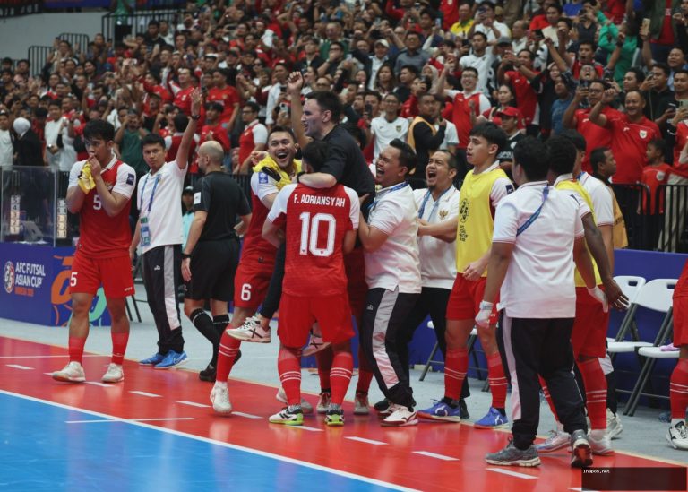Indonesia memastikan tiket ke partai puncak setelah menyingkirkan Jepang dengan skor 5-3 pada laga semifinal Piala Asia Futsal 2026 di Indonesia Arena