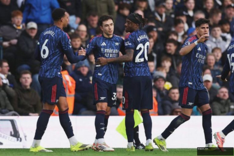 Arsenal memperlebar jarak menjadi tujuh poin di puncak klasemen dari para pesaing terdekatnya seusai meraih kemenangan telak atas Leeds United.